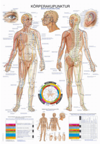 Die Punkte liegen auf Leitlinien, die man als Meridiane bezeichnet. In ihnen fließt nach traditioneller chinesischer Auffassung die Lebensenergie, genannt "Qi" mit ihren Anteilen Yin und Yang. Ihr Gleichgewicht stellt den idealen Gesundheitszustand her, ihr Ungleichgewicht führt zu Beschwerden und Krankheiten.